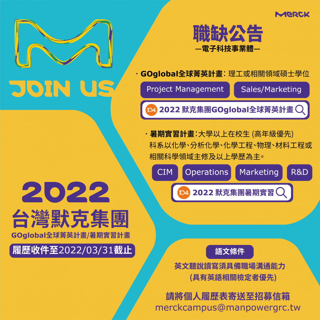 #兩年輪調 #海外培訓 #把握成為默克員工機會 #come2Merck #TeamMerck